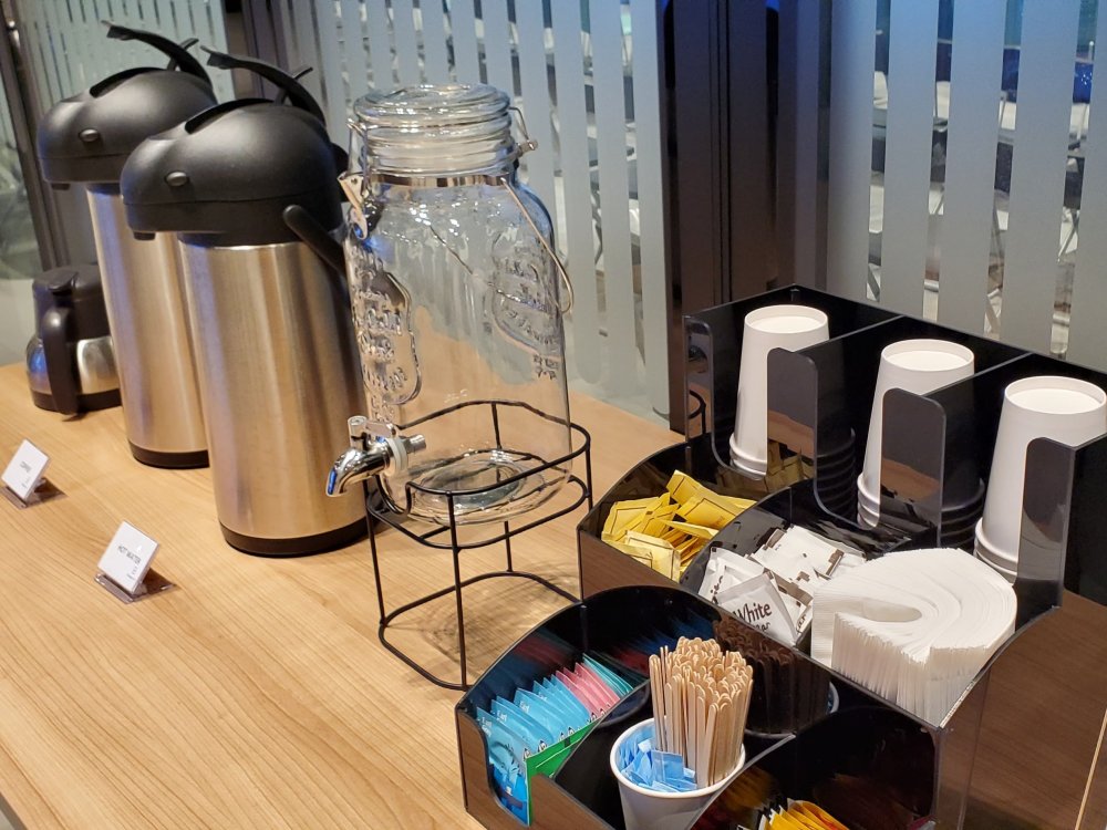 - Complimentary coffee, teabags and water