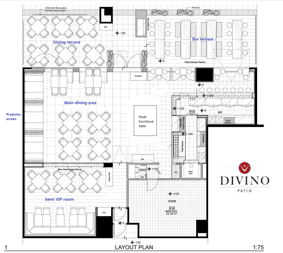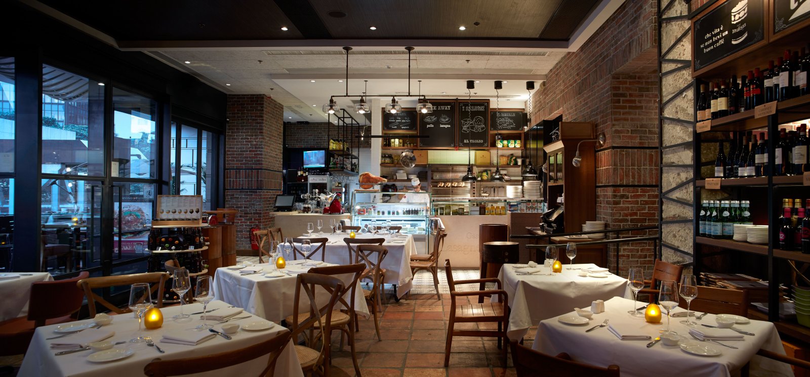 DiVino Patio, the latest restaurant of DiVino Group, offers wonderful outdoor seating in the heart of our restless city; an oasis only five minutes walk from the shores of Victoria Harbour. Red brick walls, vintage blackboards, old slicers, warm interiors with rustic shades. Imagine hanging hams, Sicilian olives, freshly baked bread, colorful homemade marmalades, hand-made pasta and pizza, fragrant salami, slices of pecorino, bottles of genuine oil, pots of fresh rosemary, big wheels of parmesan cheese, savoury main courses.